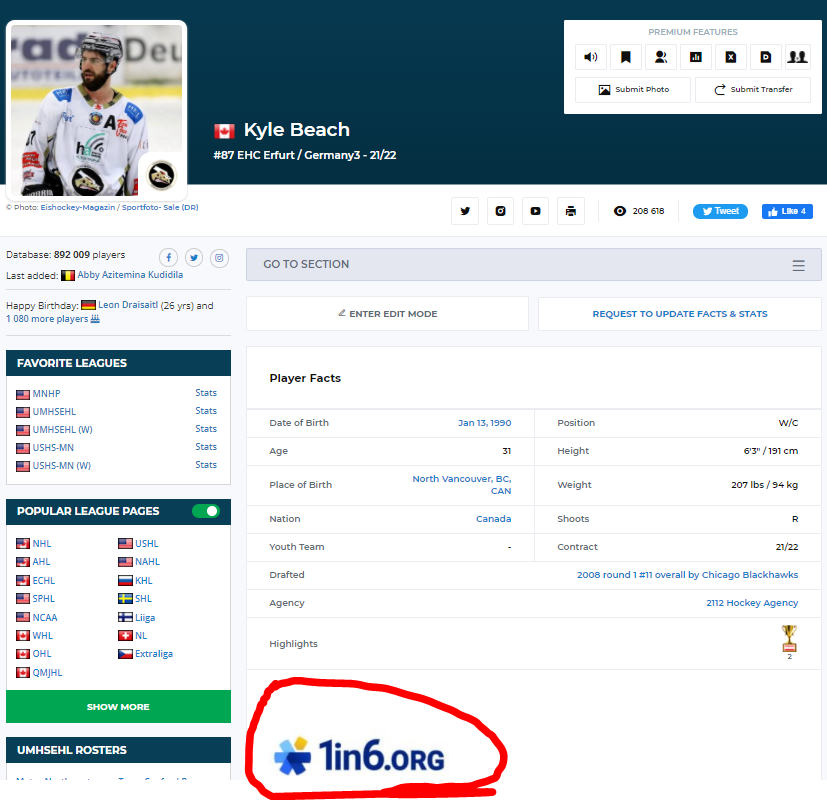 Kyle Beachs EliteProspects page now links to 1in6 a nonprofit organization which supports male victims of sexual assault and fights to end the stigma of men coming forward with abuse. Kyle Beach has identified himself as one of the victims alleging he was sexually assaulted by a former Chicago Blackhawks video coach. Complete player biography and stats.
